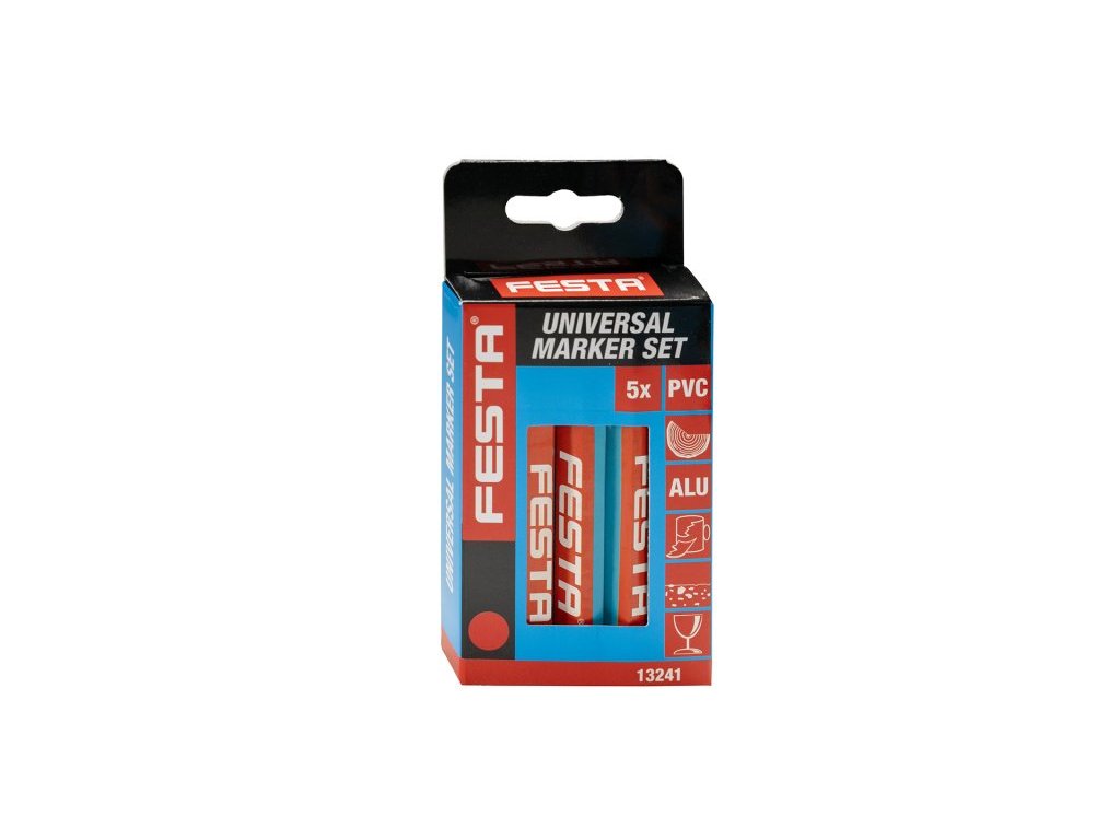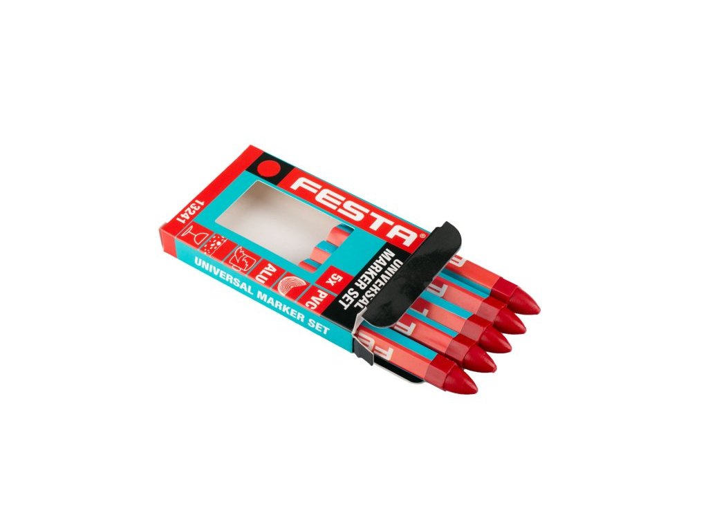 Sada pastelových popisovačů, délka 120 mm, v balení 5 ks - červená. Vhodné pro: zdivo, kovy, dřevo, sklo, plast, keramika.
