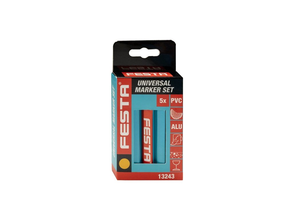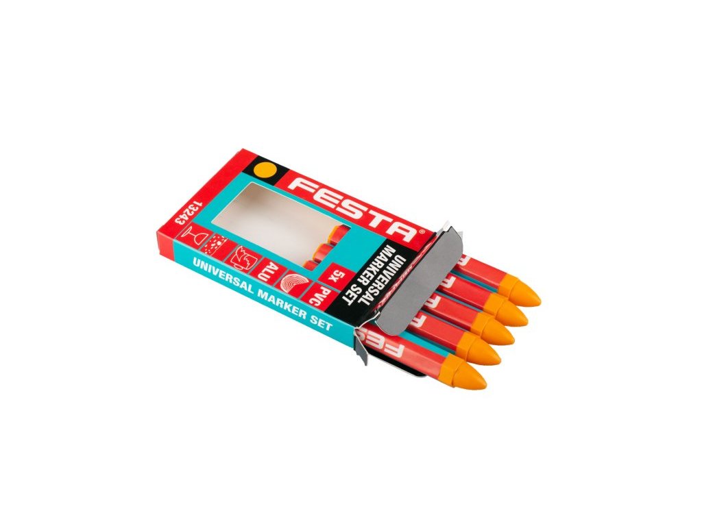 Sada pastelových popisovačů, délka 120 mm, v balení 5 ks - žlutá. Vhodné pro: zdivo, kovy, dřevo, sklo, plast, keramika.