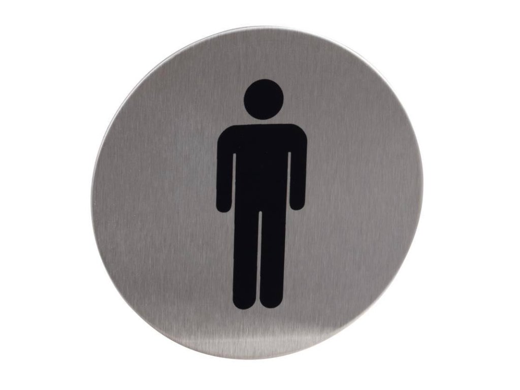 Znak rozlišovací "WC-muži", Ø 75 mm, samolepící, nerez