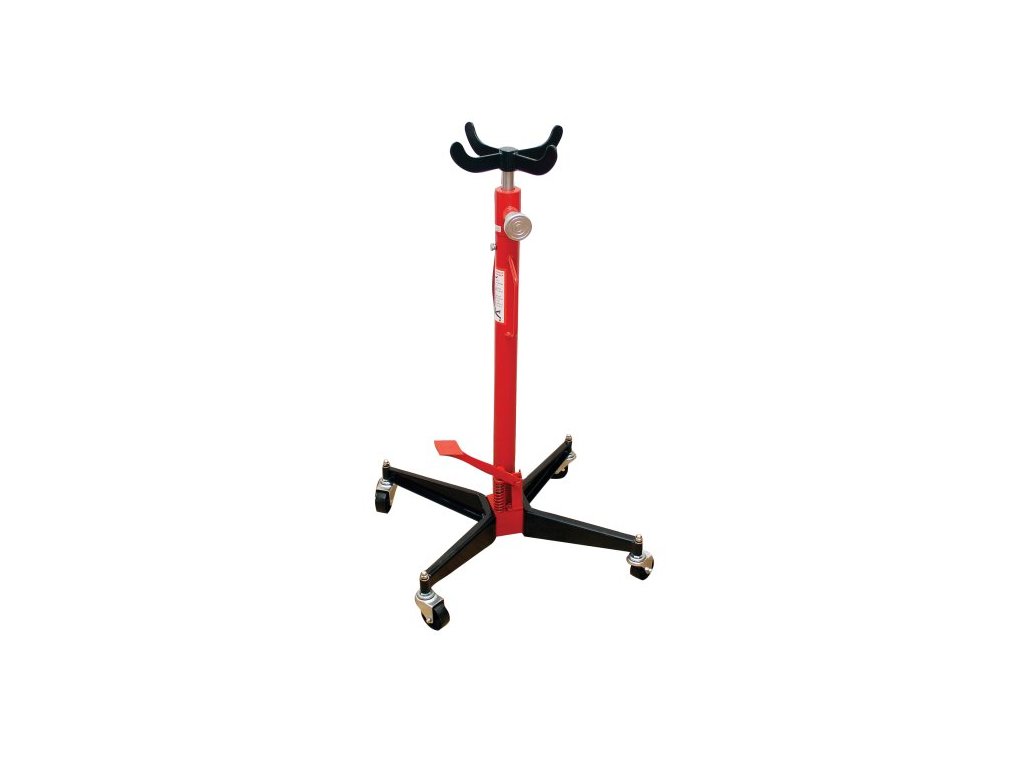 Hydraulický zvedák převodovky. Tento zvedák je přemístitelnou hydraulickou jednotkou. To je spolu s kompaktní konstrukcí, nízkou váhou, velkým zdvihacím rozsahem, rychlostí zvedání, vyměnitelnou připojovací částí, pevností a spolehlivostí vhodné pro široký rozsah použití. Může být využíván při montáži a demontáži součástí a jiných břemen, které je potřeba zdvihnout nebo spustit. Je ideálním nástrojem pro využití v autoopravnách, mobilních garážích. Nosnost 500 kg. Min. výška 1100 mm, max. výška 1900 mm. Rozměry 570 x 570 x 1100 mm.